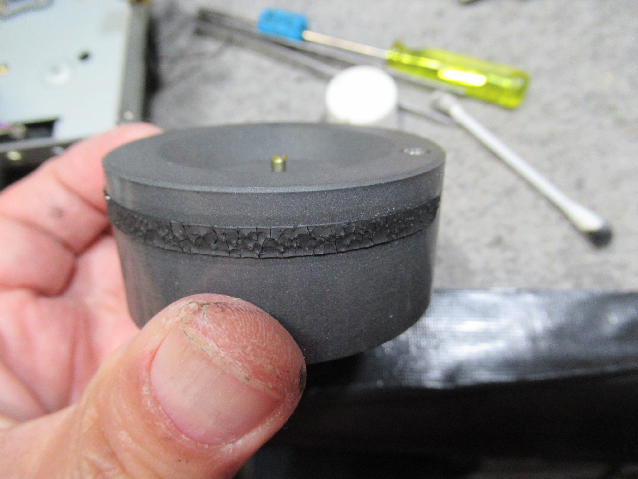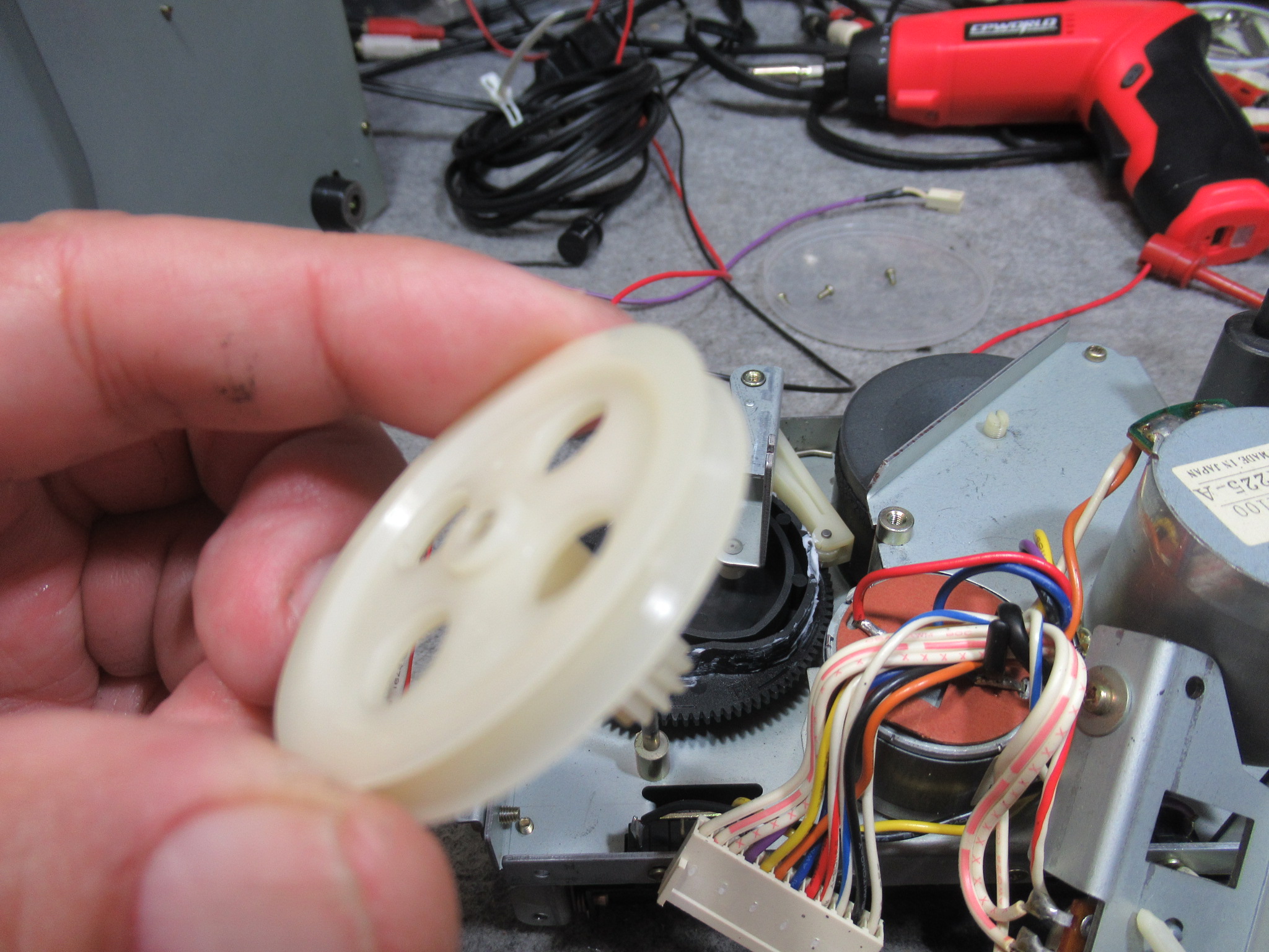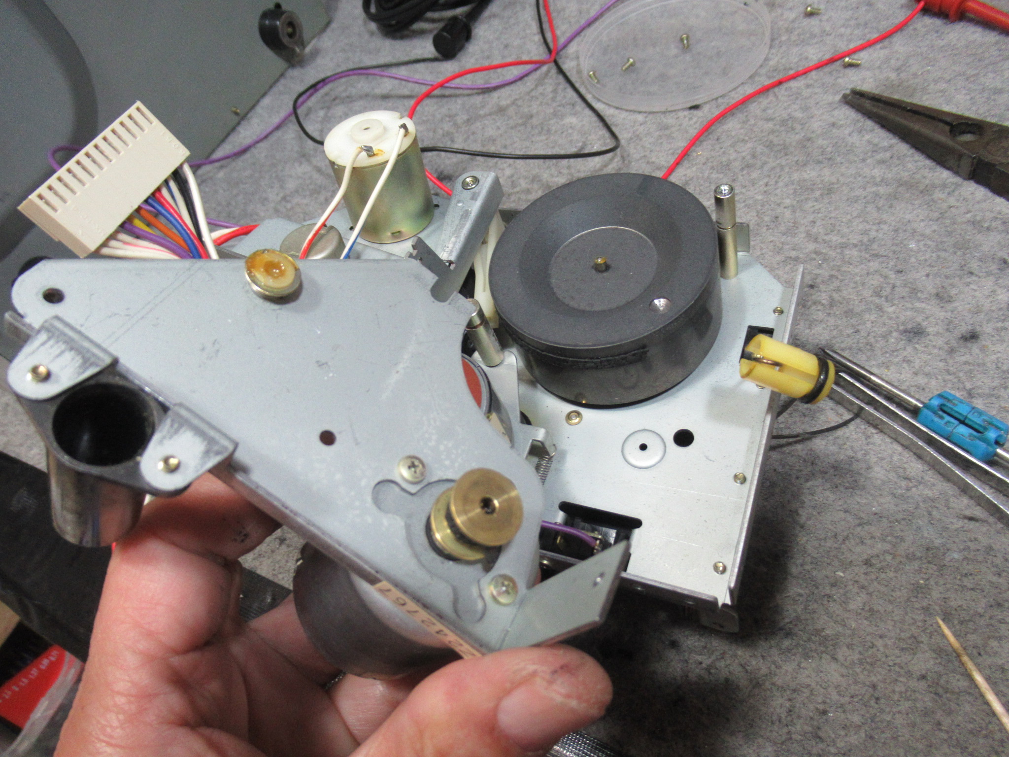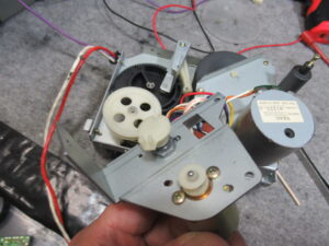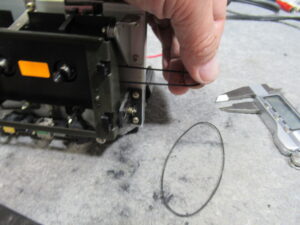 メカを降ろします。細切れになっている元ゴムベルトを除去します。