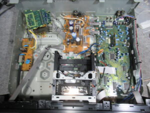 ところが、テープをセットしましたが、音が出ません。しかし、時間が経過するにつれて音が出るようになります。電解コンデンサーの劣化が疑われます。