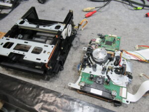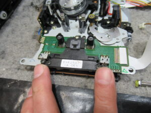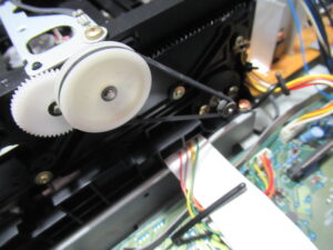 汚れた接点を研磨清掃し、スライド接点専用グリスを処置します。テープをセットしたときに「カシャカシャ」といって動作が遅れるときはここの接触不良です。