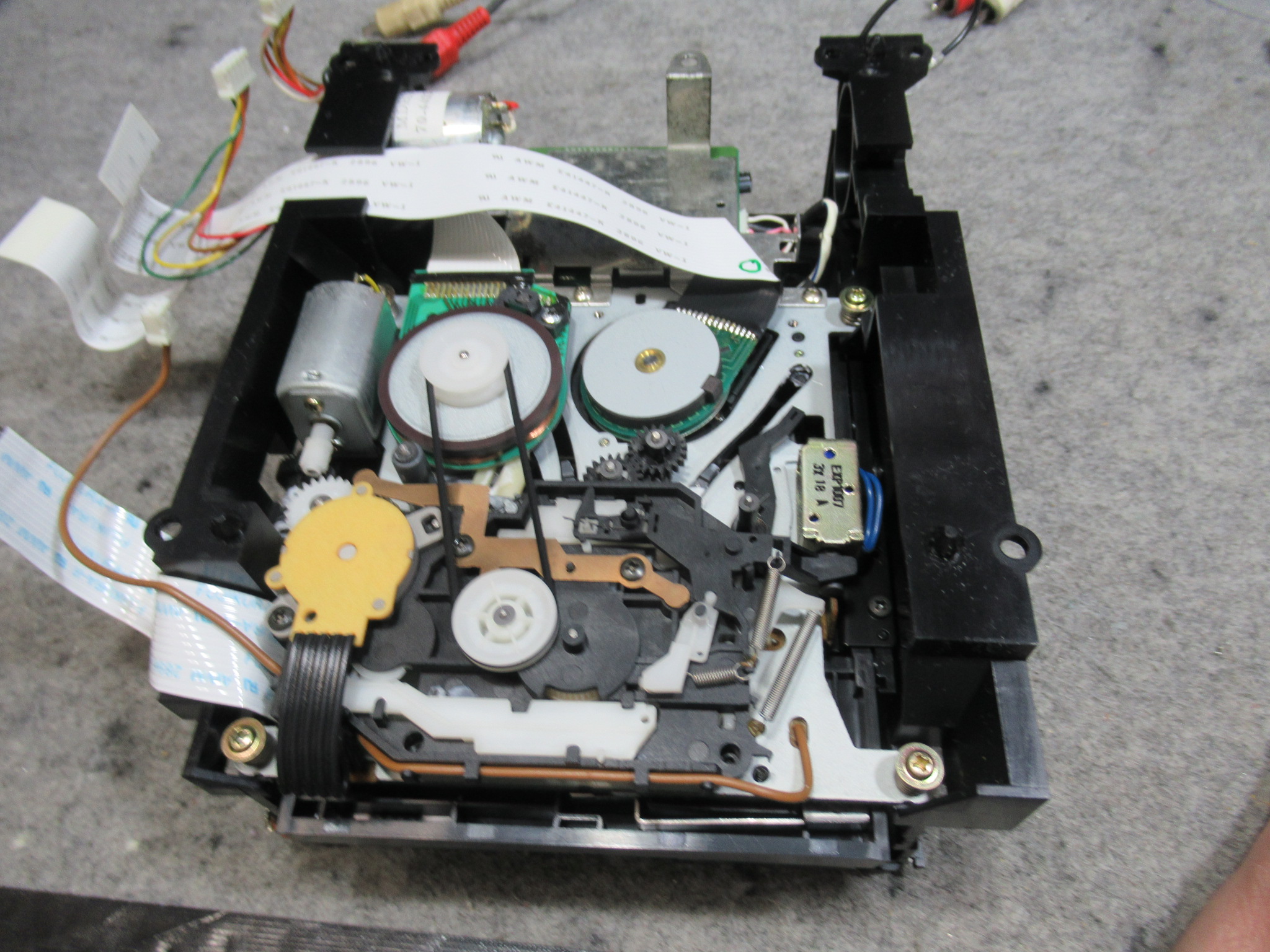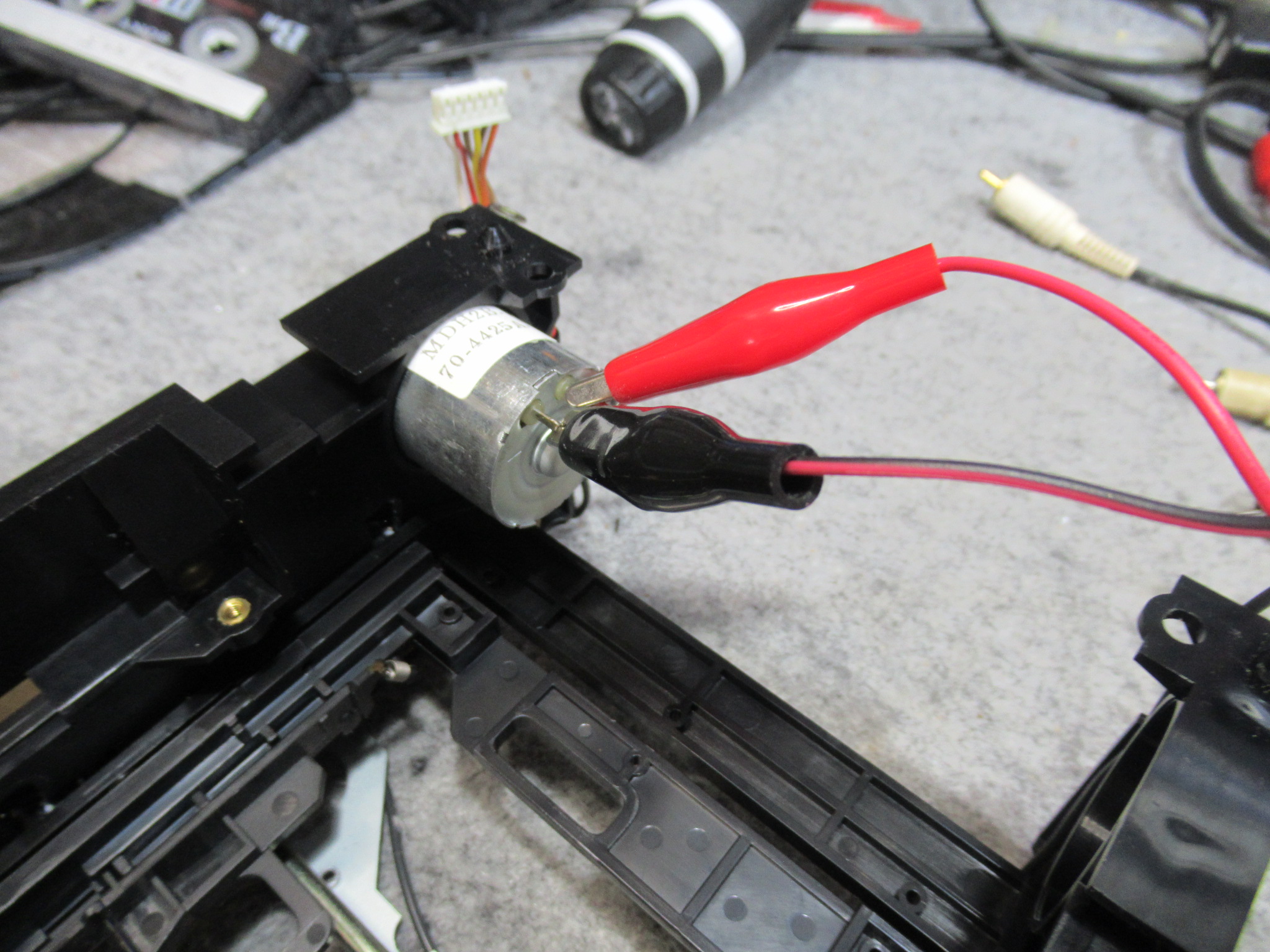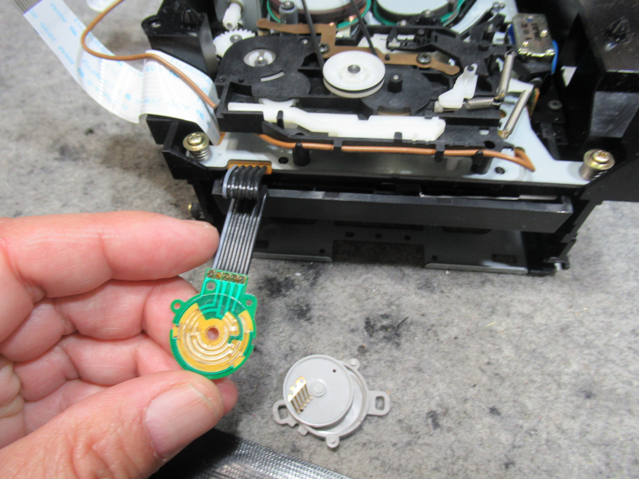 汚れた接点を研磨清掃し、スライド接点専用グリスを処置します。テープをセットしたときに「カシャカシャ」といって動作が遅れるときはここの接触不良です。