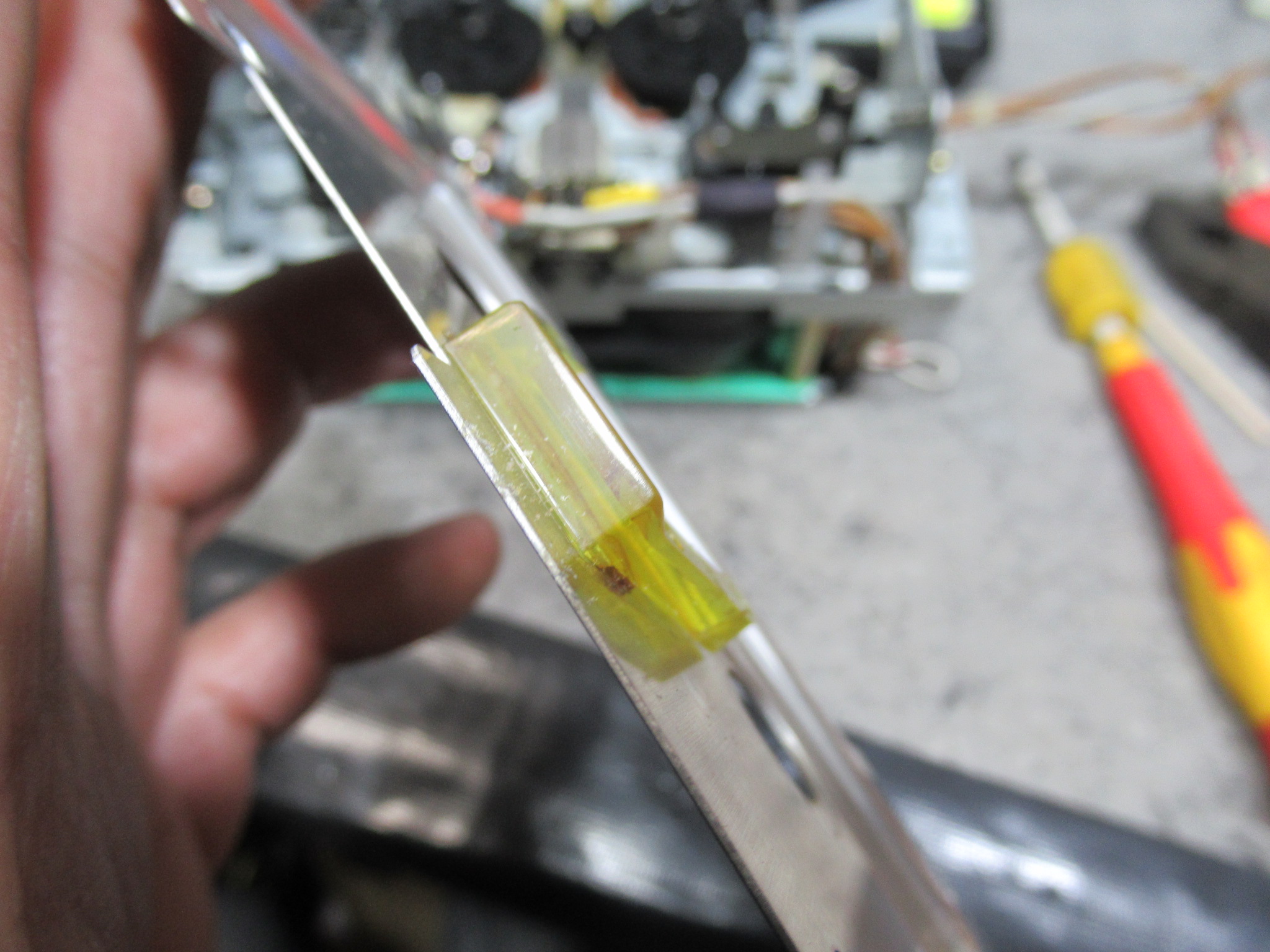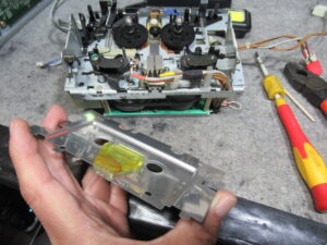 やはり録音ヘッドの調整が必要なようですので、代替措置として1mm厚の鋼板を加工して取り付けます。