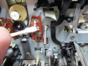 録音ヘッドのアジマス調整を行います。先ほど取り付けたパーツを微調整して行います。