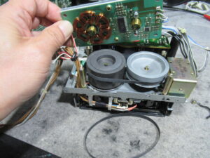 ピンチローラーがプラスチックのように硬化しています。これが音揺れの原因と考えられます。