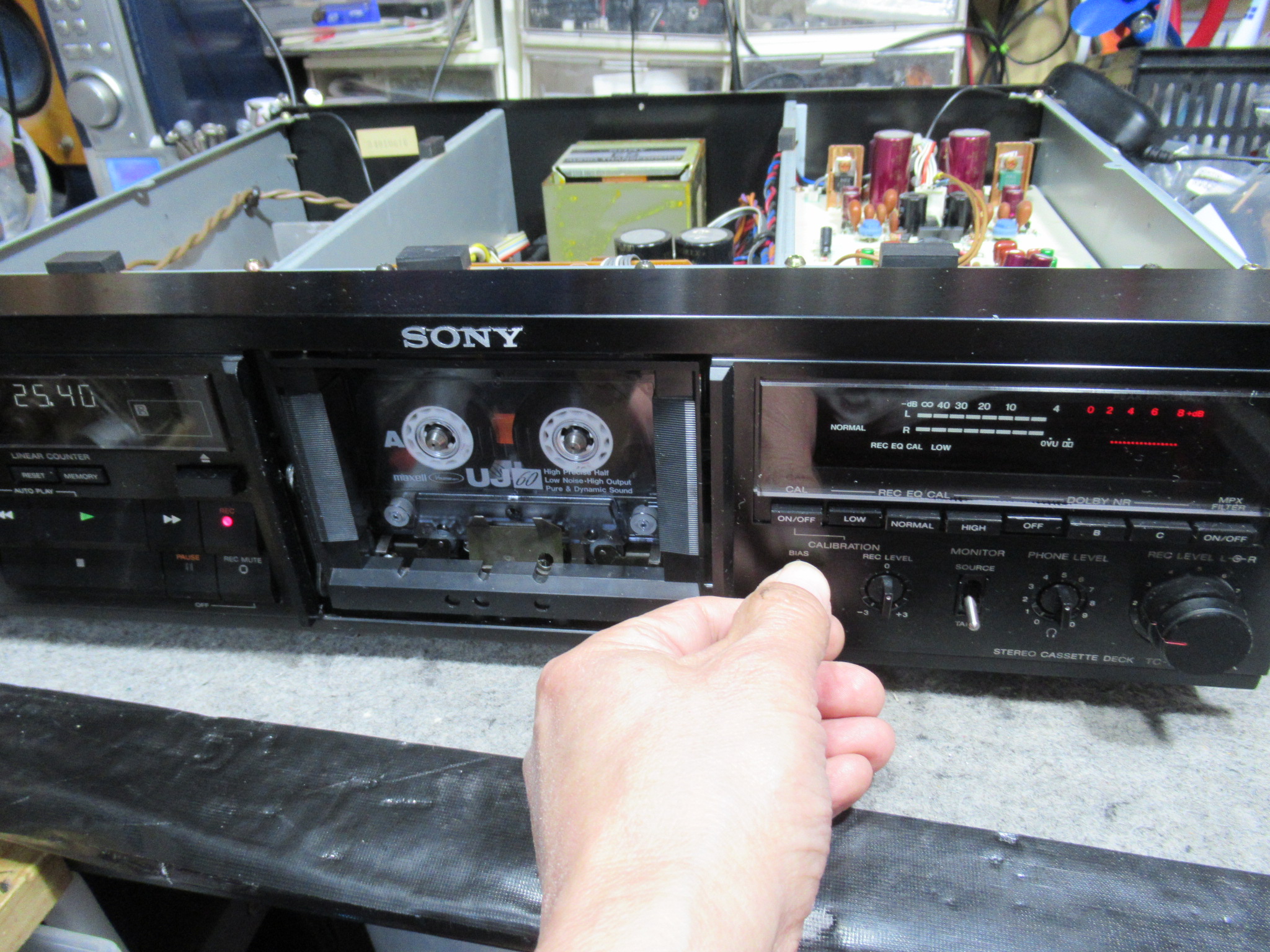 SONY製3ヘッドデュアルキャプスタンカセットデッキ、TC-K555ESXの修理依頼をいただきました。